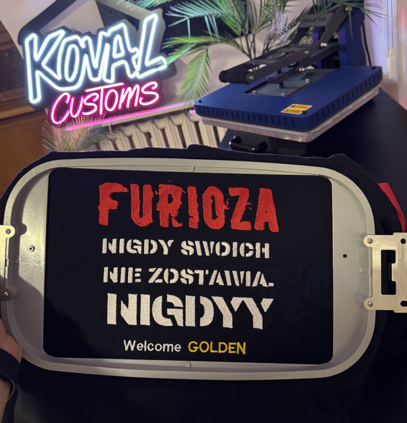 Furioza bluza, bluza Furioza cytat, haftowana bluza Furioza, bluza z napisem Furioza, bluza z cytatem, bluza Furioza sklep, personalizowana bluza haft, bluza streetwear Polska, Koval Customs, polska marka odzieżowa, handmade hoodie, bluza premium, bluza lojalność