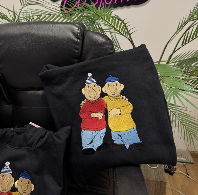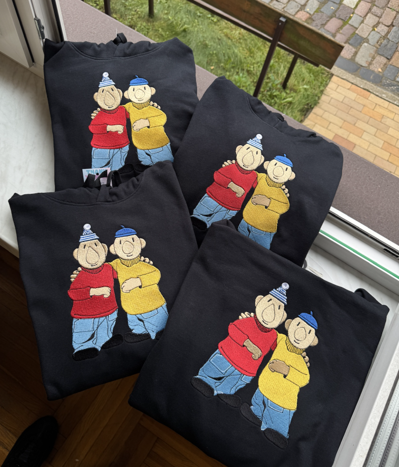 Haftowane bluzy Pat i Mat to projekt łączący humor, nostalgię i rzemiosło.