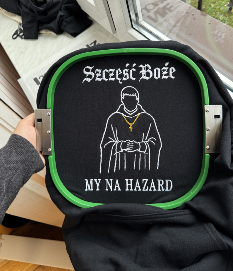 haftowana bluza, bluza 1670, serial 1670 bluza, szczęść boże my na hazard, bluza z cytatem, bluza z haftem, bluza handmade, Koval Customs, polska marka streetwear, bluza unisex, bluza premium, bluza zabawna, bluza mem, bluza z serialu, bluza z napisem, bluza 280g, haft komputerowy, personalizowana bluza