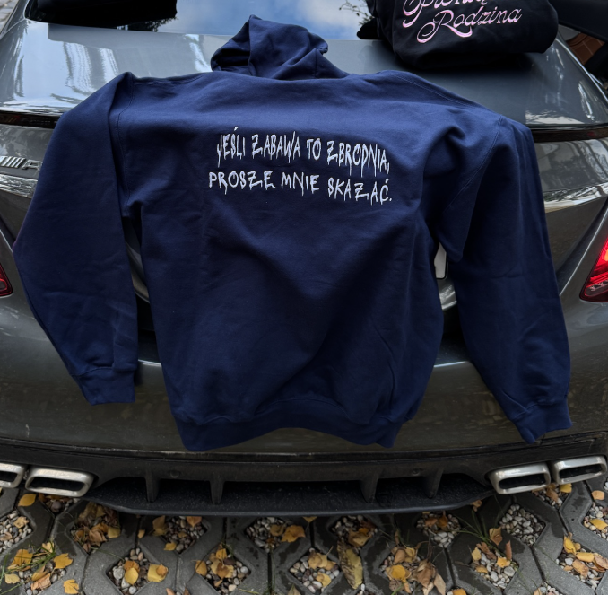 haftowana bluza, bluza z napisem, bluza z cytatem, bluza z piosenki, bluza handmade, bluza unisex, bluza Koval Customs, polska marka streetwear, bluza premium, personalizowana bluza, haft komputerowy, bluza 280g, bluza z haftem Warszawa, bluza z tekstem